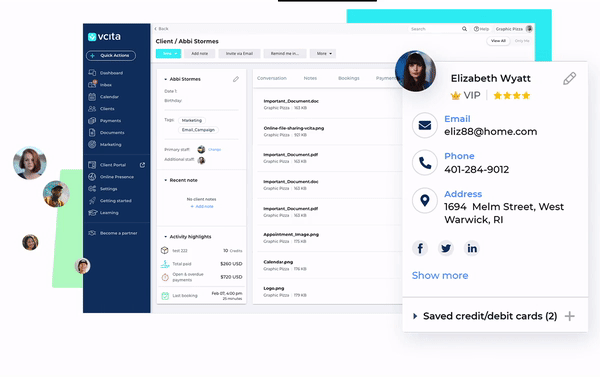When implementing document management software, you want to make sure it allows you to see all your documents in one place and organize them using tags and descriptors that help you understand what each document’s purpose is. For example, with vcita’s document management system you can add a tag to any document and connect it to a client card in your powerful CRM, that way, your documents are connected to relevant clients and you can quickly see what documents are where.