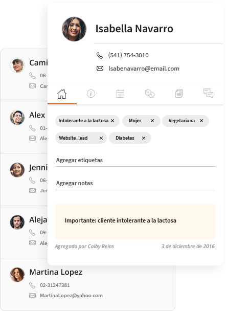 Almacene, gestione y etiquete a sus clientes potenciales, contactos y clientes actuales en una plataforma en línea centralizada.