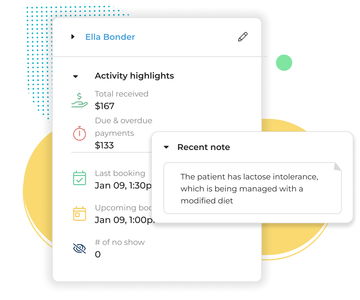 Easily navigate through patient history, including notes, messages, documents, appointments, and billing, all from one place.