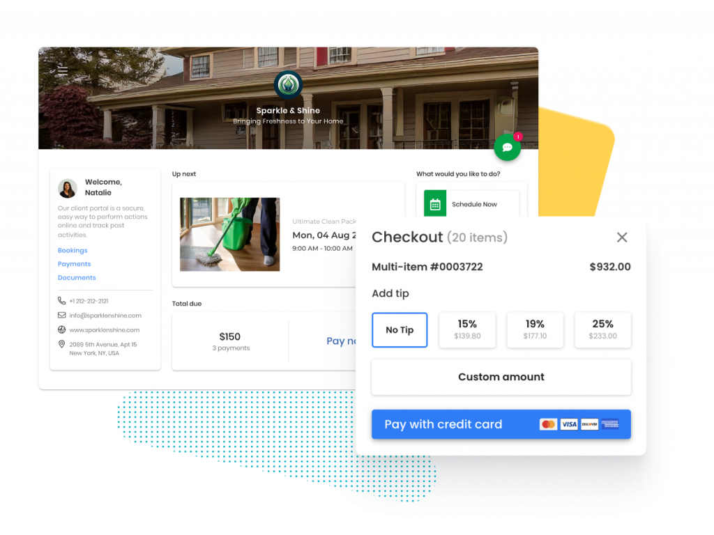 Let your clients discover, book, and pay for jobs while while you’re working.