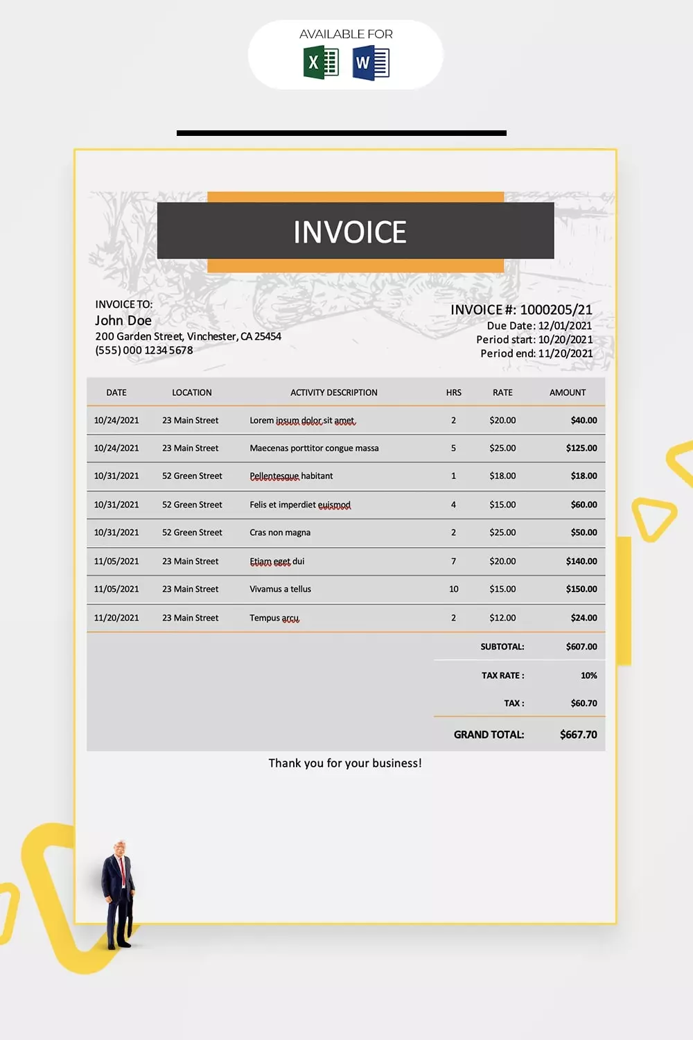 Package of 13 invoice templates for Microsoft Excel in .Docs format