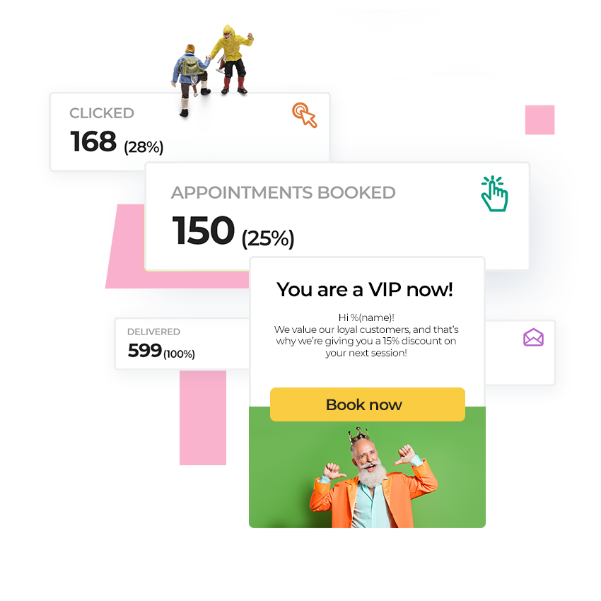 Stay in touch with easy-to-use SMS & email marketing campaigns. Grow your business and keep your clients close, by offering coupons and special deals.